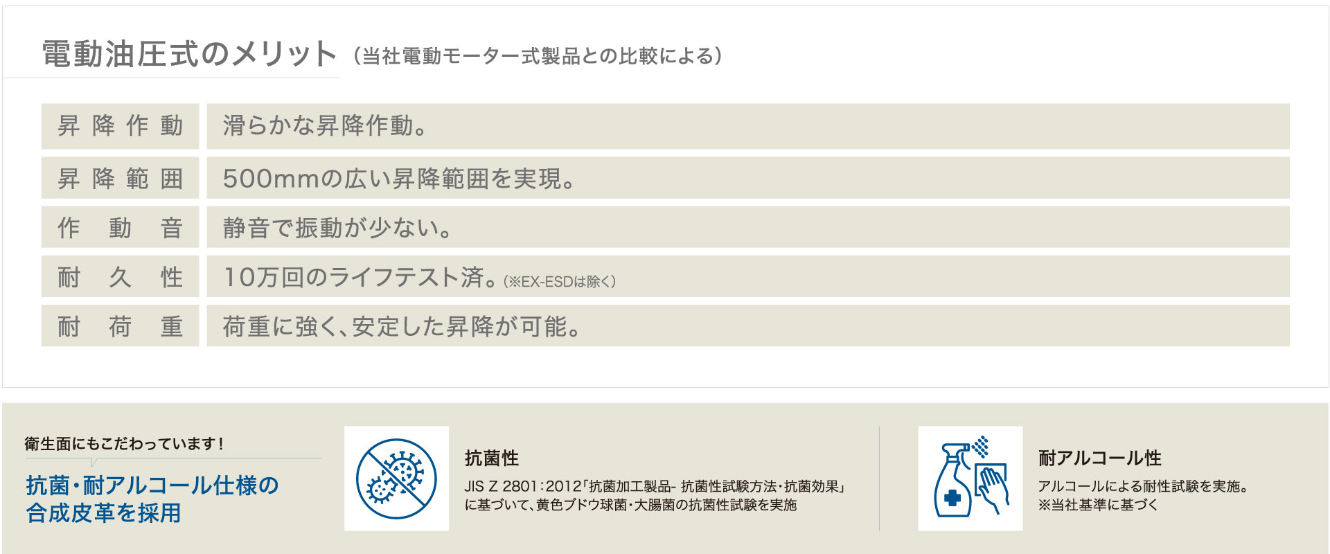| 本体昇降範囲(電動油圧式) | 575~920mm |
